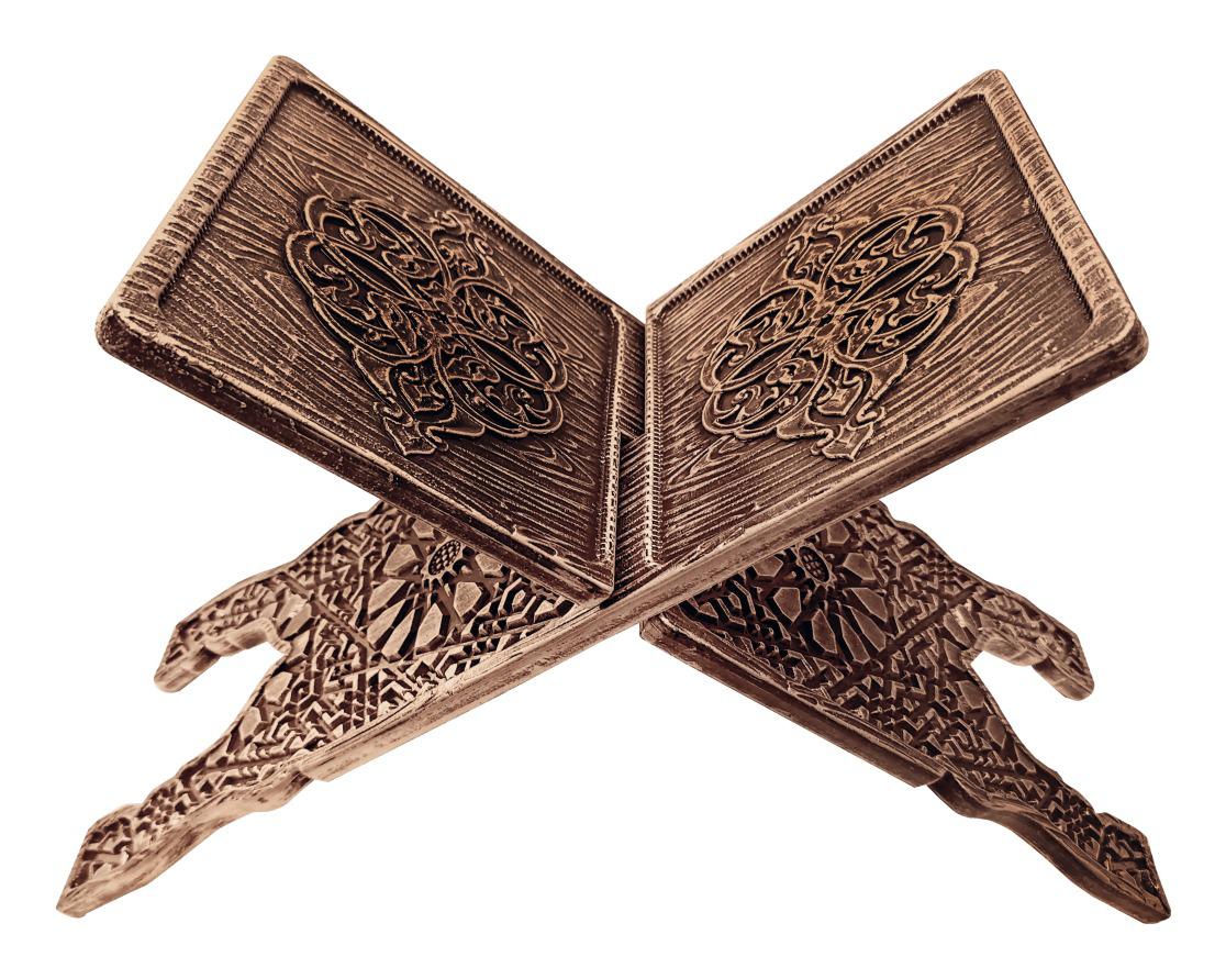 Selçuklu sanatının zarif motifleriyle süslenmiş bu özel tasarım rahle, hem estetik hem de işlevsel bir kullanım sunar. Ahşap görünümlü yapısı, el işçiliğini andıran detaylarıyla dikkat çeker. Katlanabilir özelliği sayesinde kolay taşınır ve az yer kaplar. Kur’an-ı Kerim, dua kitapları veya kitap okuma standı olarak mükemmel bir seçimdir.